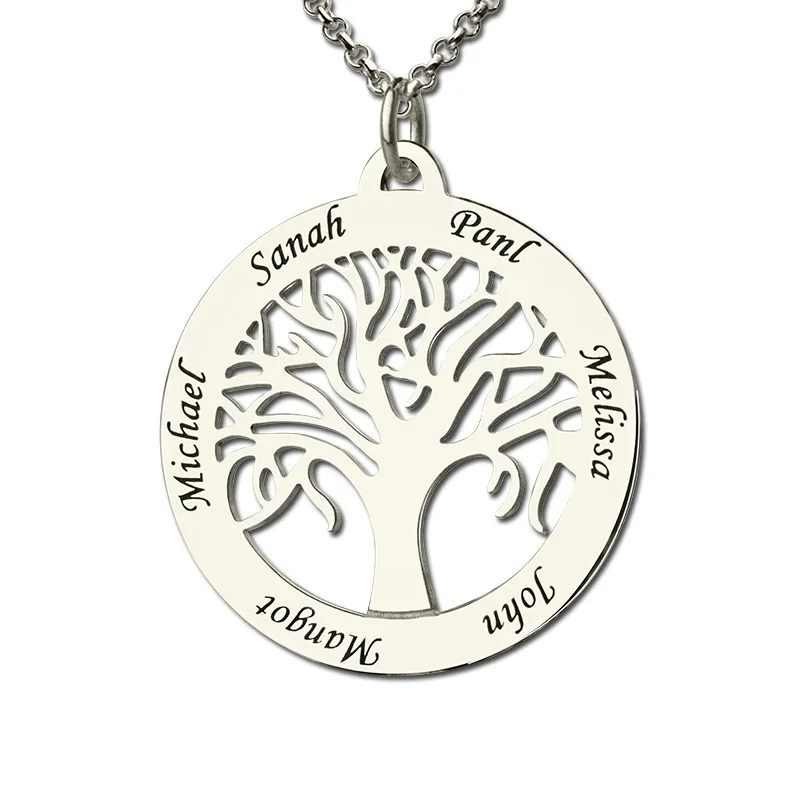 BEST AILIN Personalized Family Tree Necklace Engraved Circle Necklace Sterling Silver Mother Necklace Pr