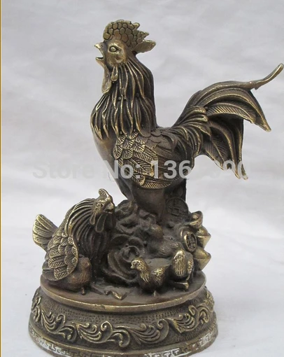 REVIEW TOP SELLER xd 001260 6"Chinese zodiac Feng shui Bronze Chick Animal chook Family yuan bao geomancy