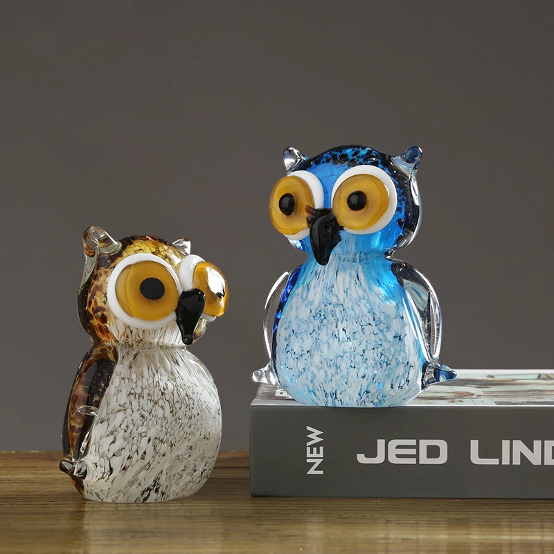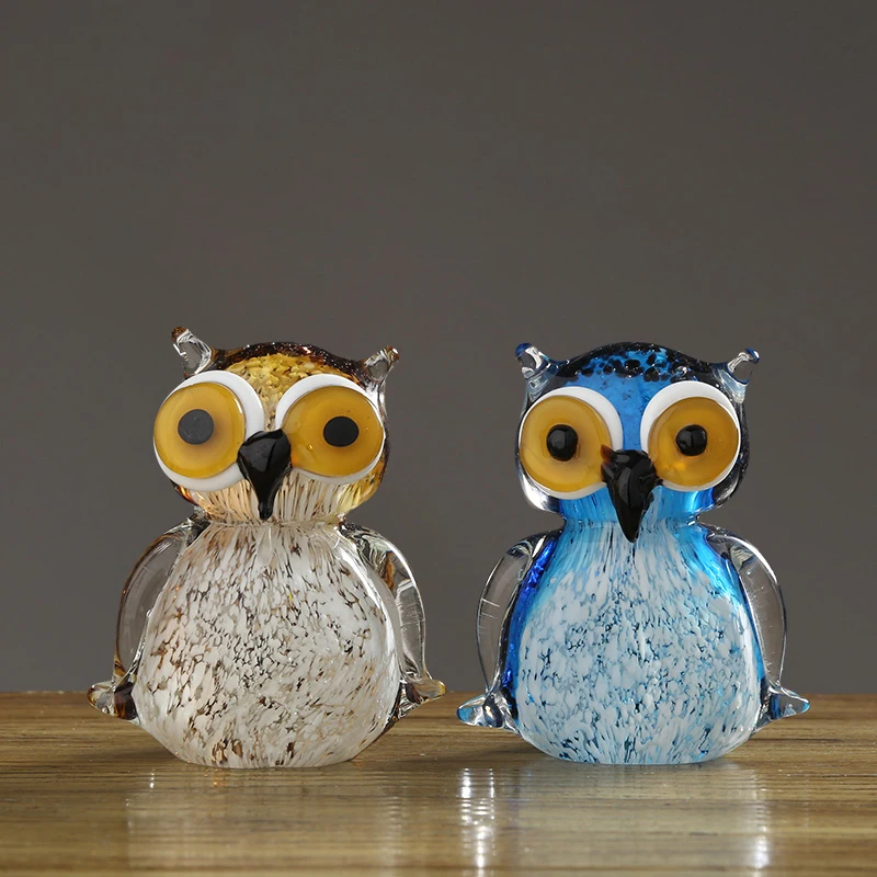 HIGH QUALITY 1 pcs Europea Crystal Glass Owl Crafts Coloured Glaze Marine Family Figurines Lovely animal Miniatu