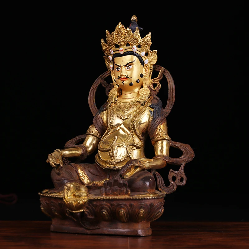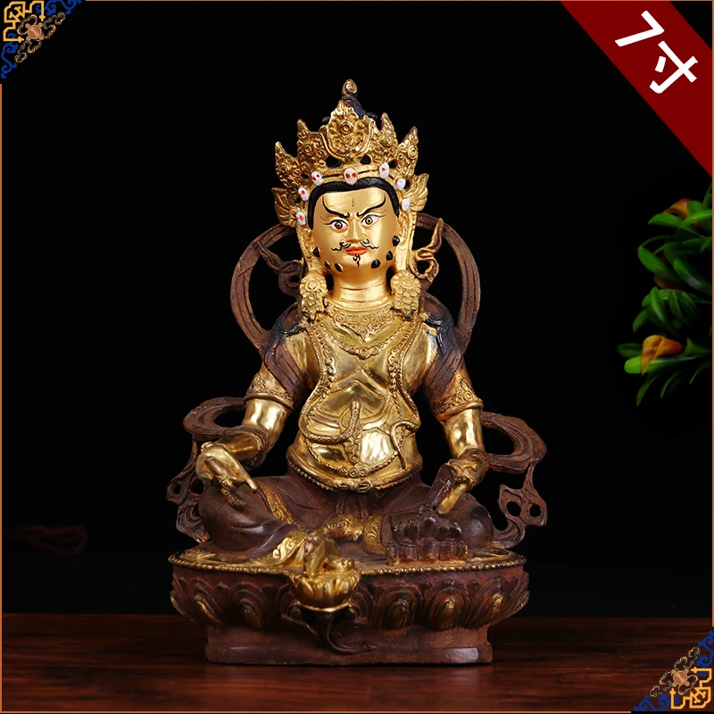 HOME family Talisman #Tibet Buddhism full Gilding Yellow Jambhala Zambala gold Buddha brass statue